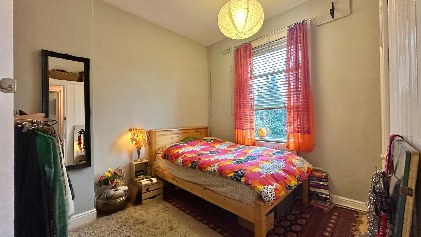 Central heating radiator, double glazed window to the rear, built in double wardrobes with storage above.