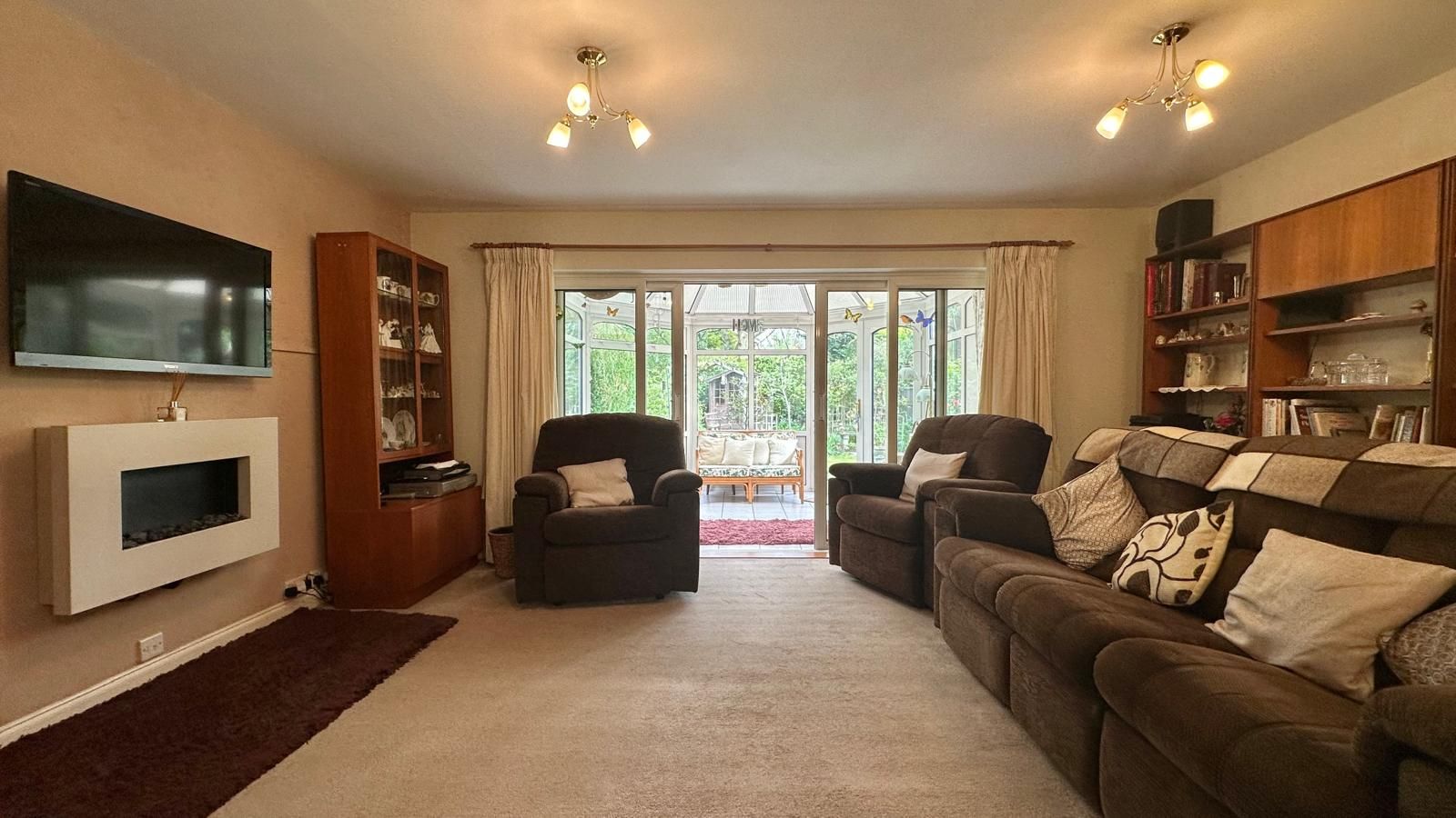 Electric fire, central heating radiator, UPVC double glazed window to the side, UPVC double glazed sliding doors onto the conservatory: