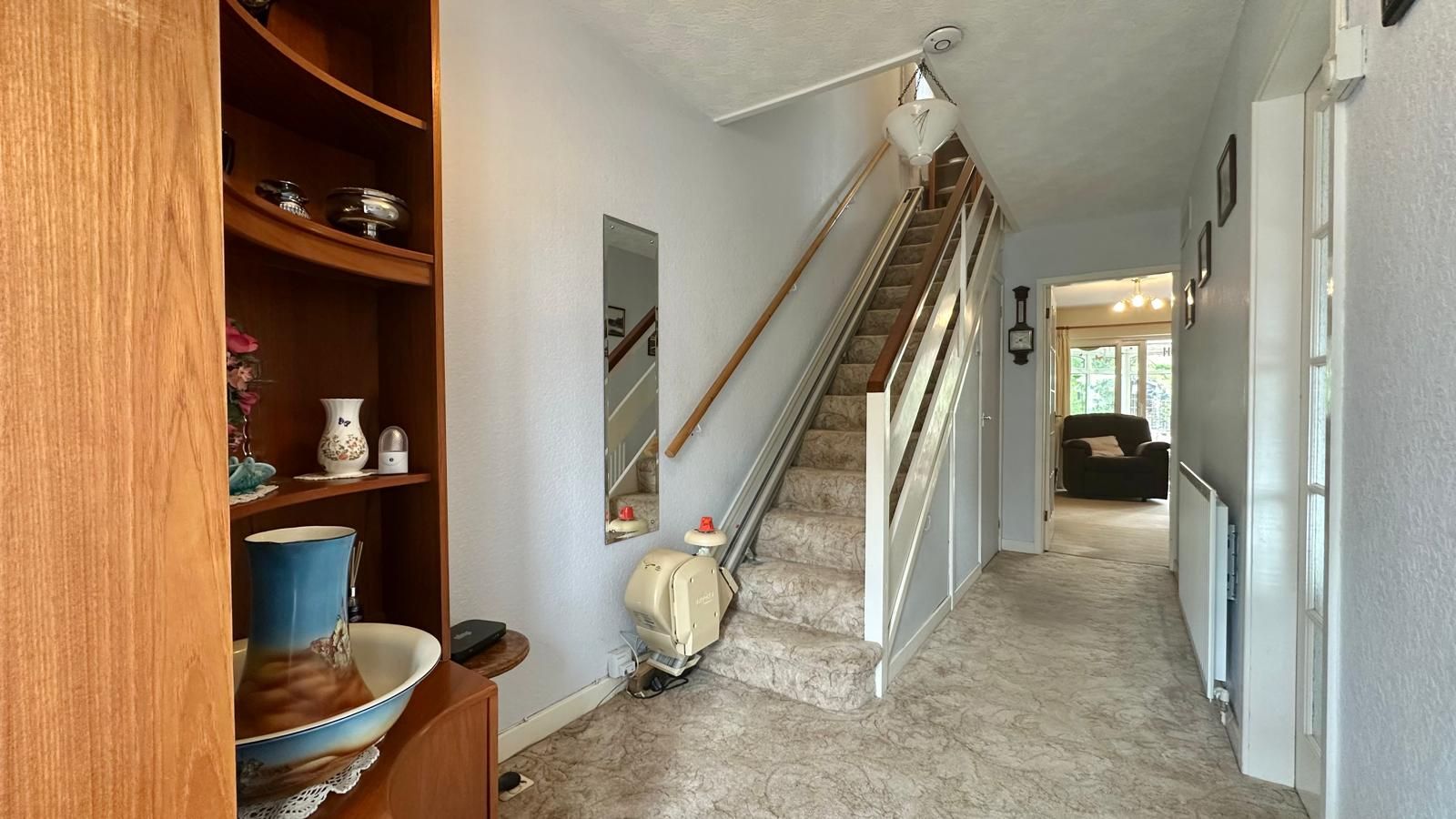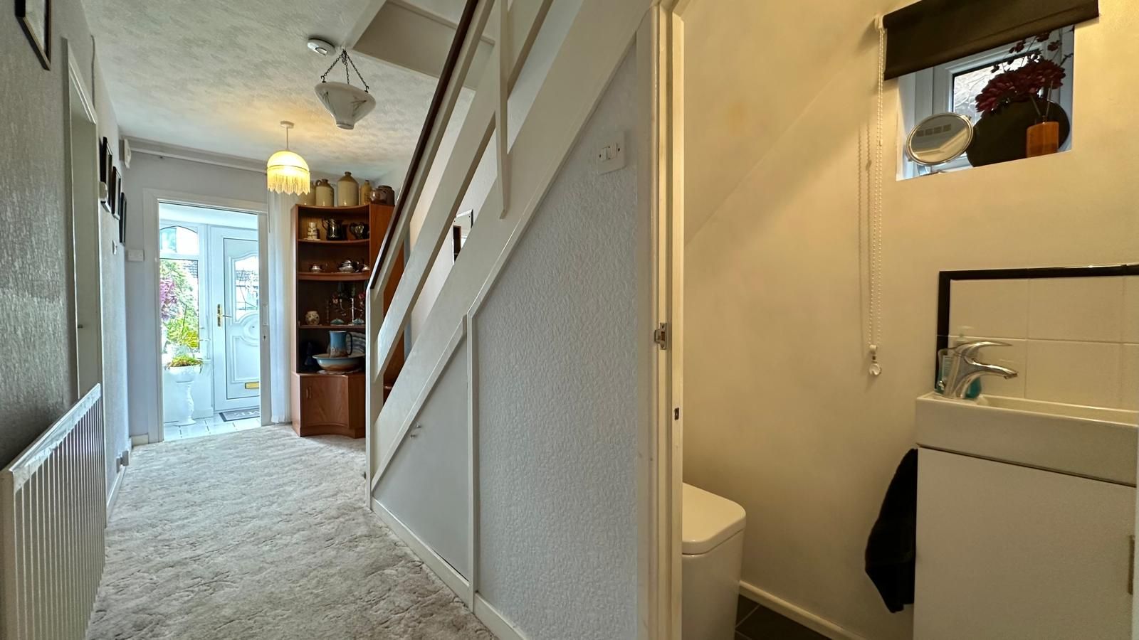 Stairs off to the first floor, doors into the kitchen, through lounge diner & ground floor WC, central heating radiator.