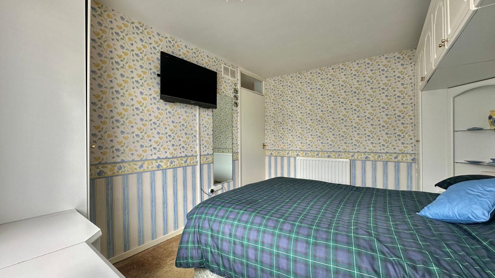 Fitted wardrobes, central heating radiator, UPVC double glazed window to the rear.