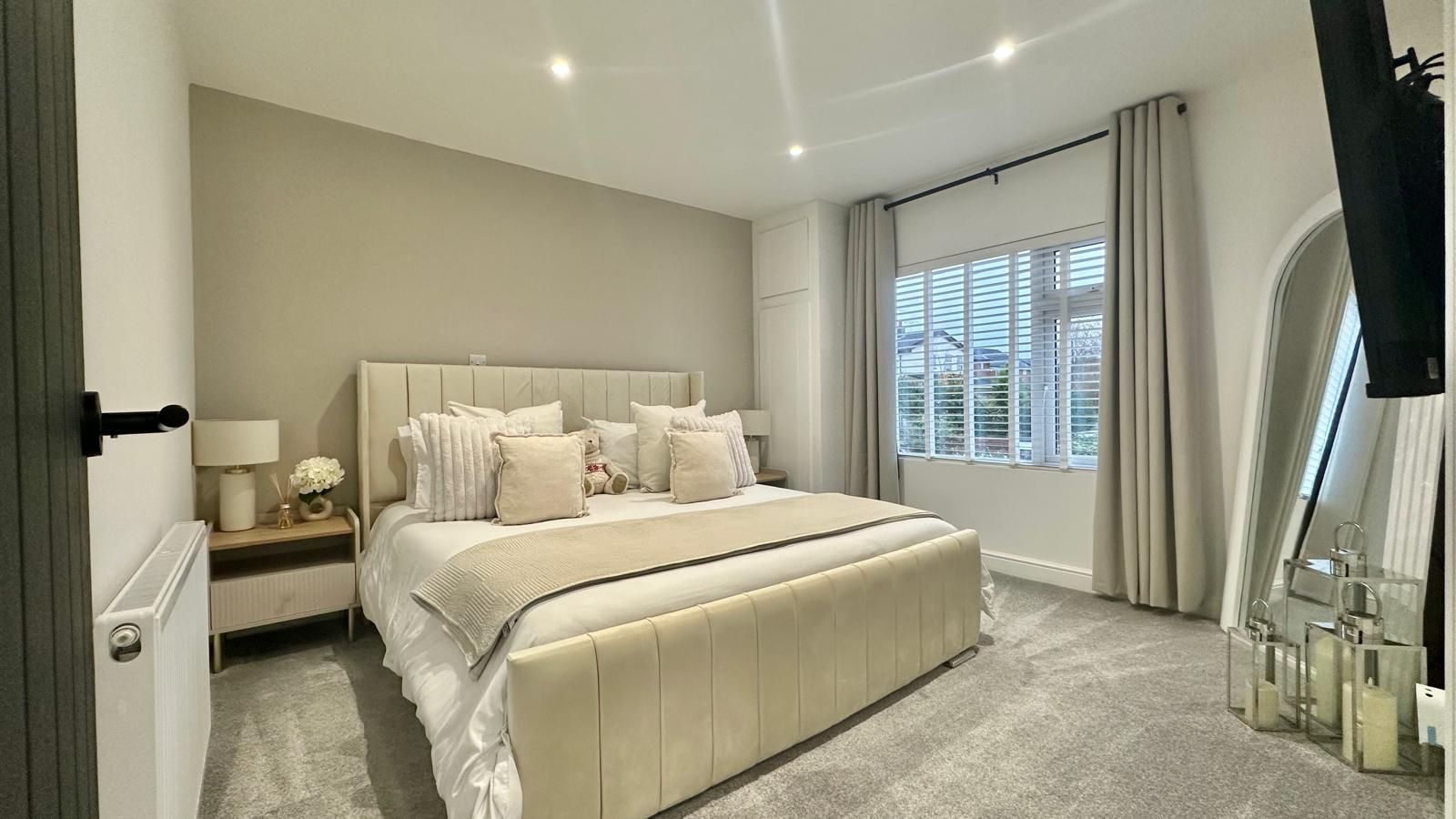 UPVC Double glazed bay window to the front. column central heating radiator. Built in media space in walls.