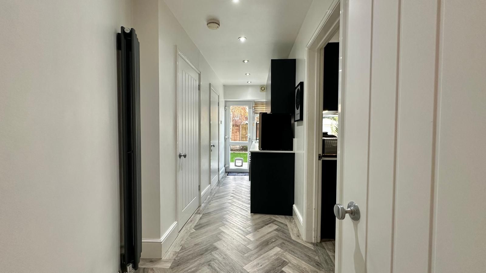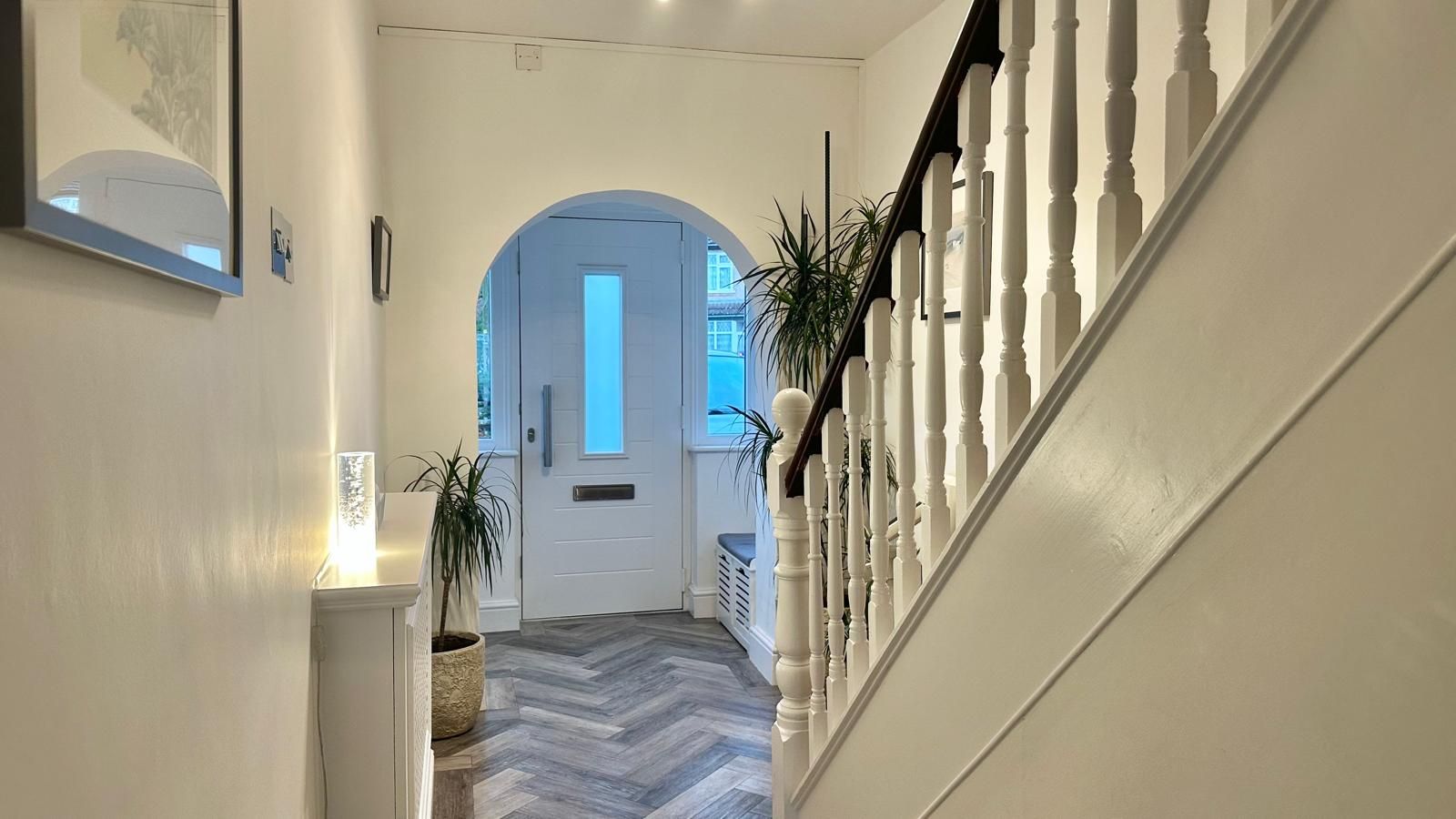 Central Heating Radiator, Herringbone flooring, double glazed window to the front & side, stairs off to the first floor, understairs cupboard, doors to Kitchen & Through Lounge Diner.